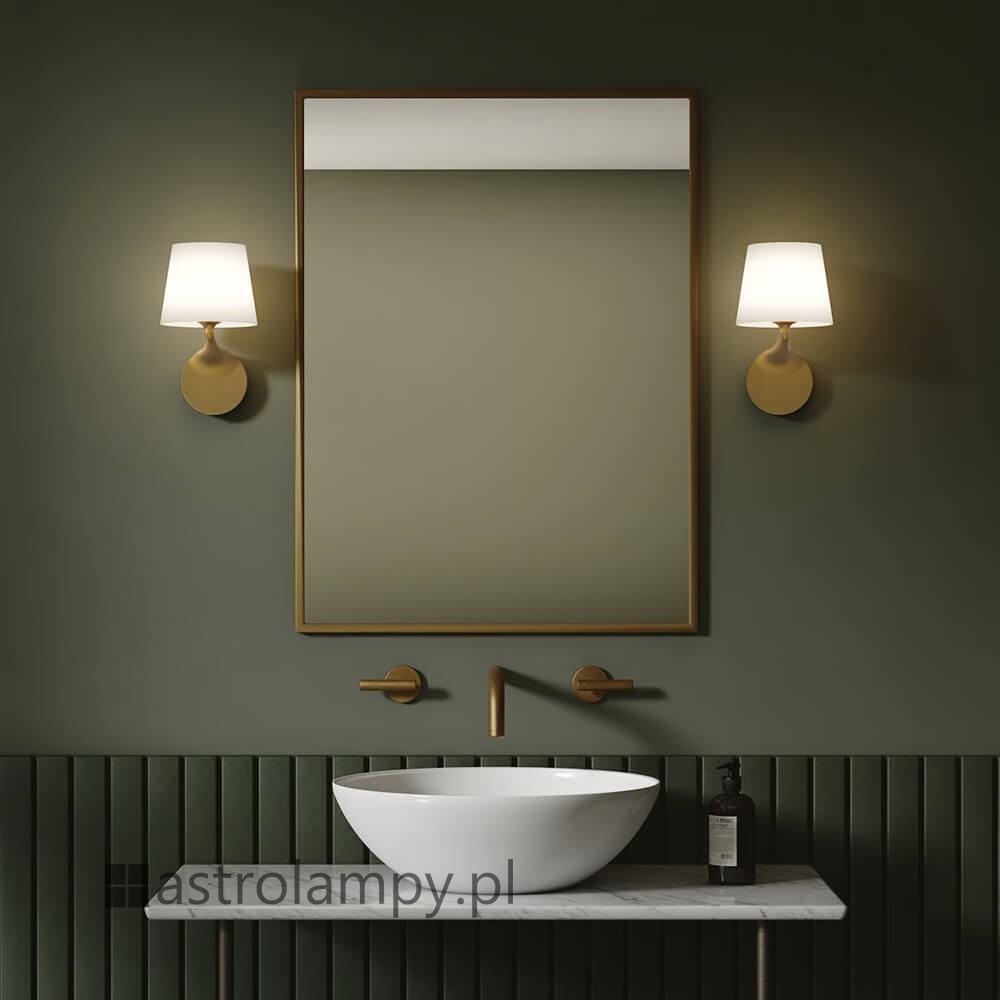 Astro Millie Wall 1454006 w wykończeniu antyczny mosiądz to elegancka propozycja do wnętrz, w których liczy się subtelny detal i ponadczasowa forma. Model wyróżnia się płynną linią podstawy oraz stylowym kloszem z białego szkła, dzięki czemu doskonale prezentuje się zarówno solo, jak i zamontowany symetrycznie po obu stronach lustra. Producent rekomenduje go szczególnie do strefy umywalkowej, ale jego minimalistyczny charakter sprawdzi się również w korytarzach, holach czy pokojach gościnnych.