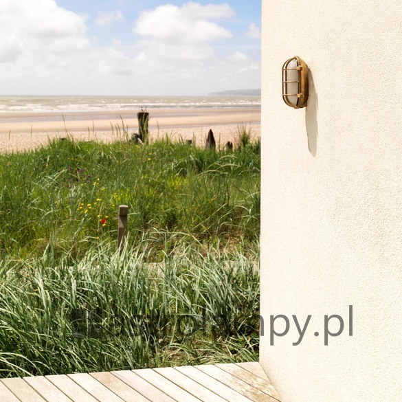 Astro THURSO OVAL 1376006 NATURALNY MOSIĄDZ to zewnętrzna, owalna lampa ścienna z ochronną kratką w kolorze naturalnego mosiądzu. Dodatkowo dyfuzor lampy wykonany jest z trawionego szkła. Oprawa może być także montowana na suficie. Lampa posiada wysoki stopień szczelności IP44, który umożliwia montaż wewnątrz i na zewnątrz budynków oraz w miejscach o podwyższonej wilgotności. Oprawa jako źródło światła wykorzystuje żarówkę E27 o mocy max. 42W (brak w zestawie). Tradycyjne źródło światła można wymienić na żarówkę energooszczędną lub LED, które w dłuższej perspektywie czasu dają wymierne oszczędności. Thurso to ciekawa lampa i elegancka propozycja.